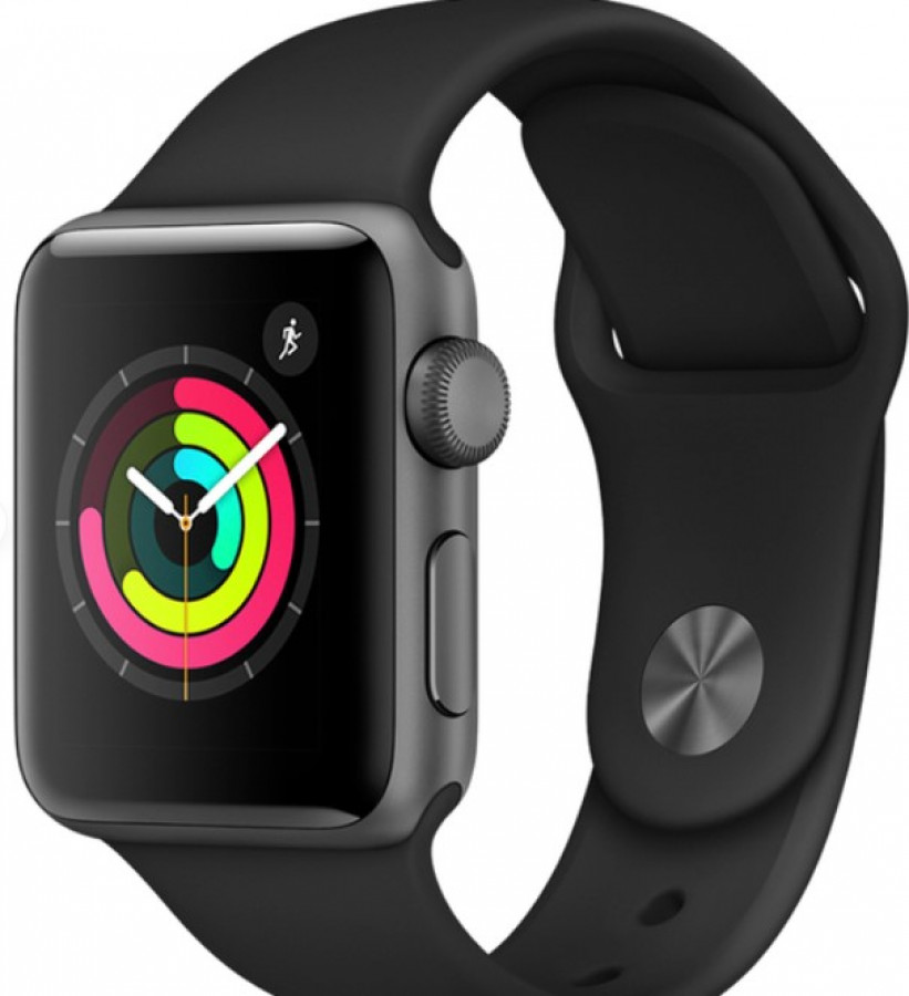 Apple Watch Series 3 GPS, 38mm Tähtiharmaa alumiinikuori ja musta urheiluranneke