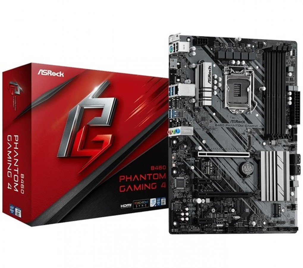 ASROCK B460 PHANTOM GAMING 4 ATX MB Socket 1200 10th Gen Intel DDR4 2933MHz 1x PCIe 3.0 x16 1 HDMI 7.1 CH HD 6 SATA3 8 USB 3.2