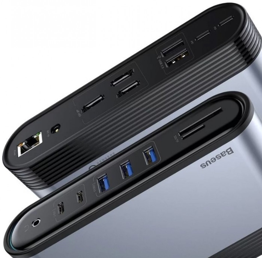 Baseus 17-in-1 Universal Hub, RJ45, 3x HDMI, 2x USB 2.0, PD+PC, kuuloke, 2x USB-C, 3x USB 3.0, Telakka tietokoneille, Maceille, iMacille, Mac Mini/Studio- ja Chromebookeille