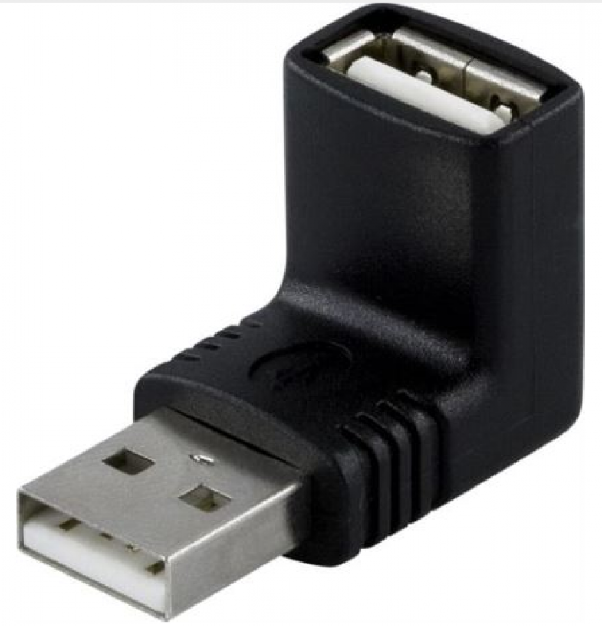 DELTACO Adapteri, USB A-tyyppi uros – A-tyyppi naaras, kulmaliitin