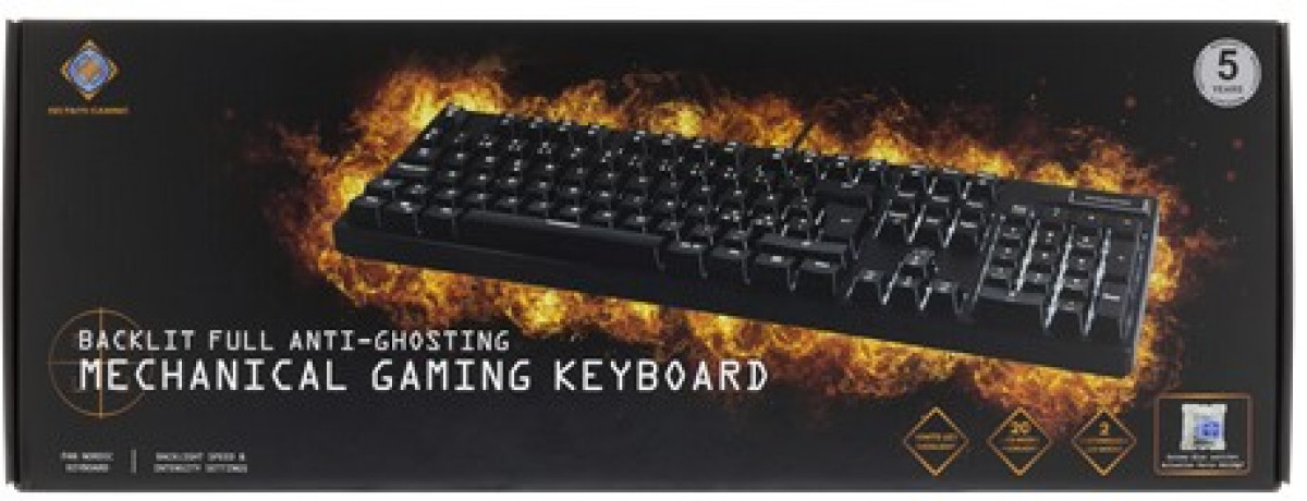 DELTACO GAMING mekaaninen näppäimistö, LED-valaistus, Outemun siniset kytkimet, N-key rollover, 105 näppäintä, pohjoismainen näppäinasettelu, USB, musta