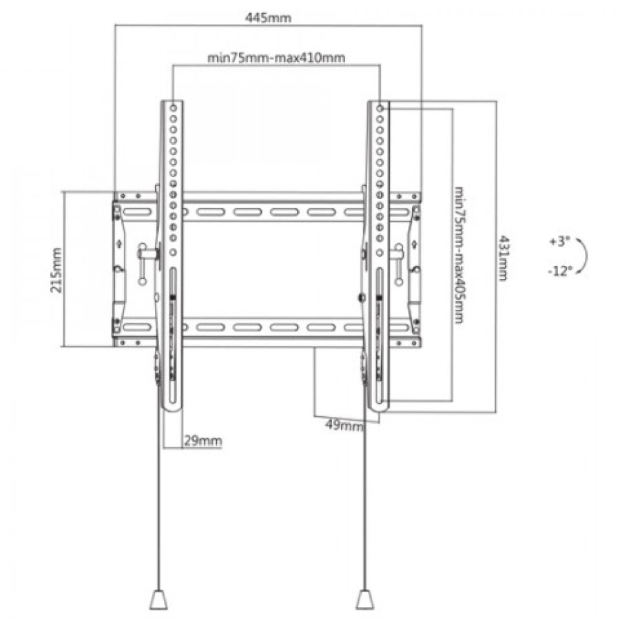 • Mekanismi, jonka ansiosta kiinnikettä voi kallistaa +3° – -12° ilman työkalujen käyttöä