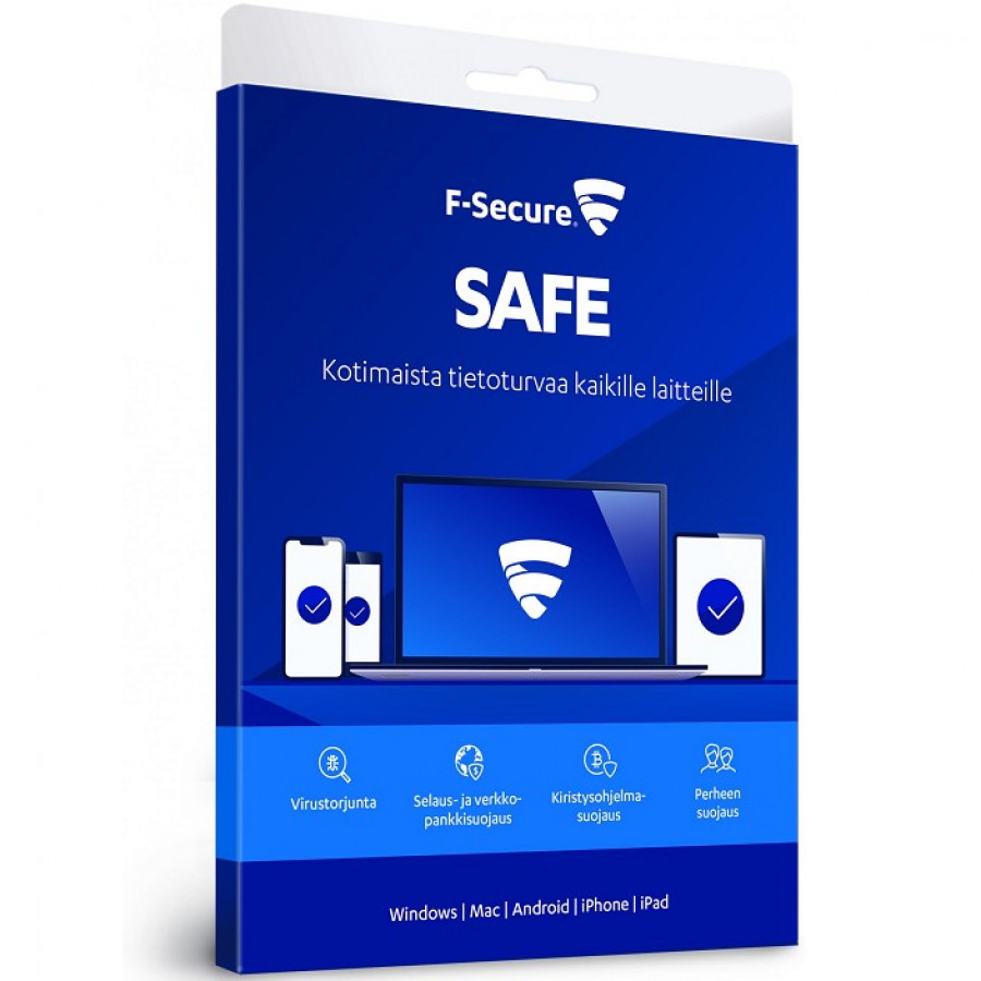F-Secure Internet Security – 3 laitetta / 2vuotta -tietoturvaohjelmisto, Windows, MacOS, iOS, Android, älypuhelin / tietokone / tabletti