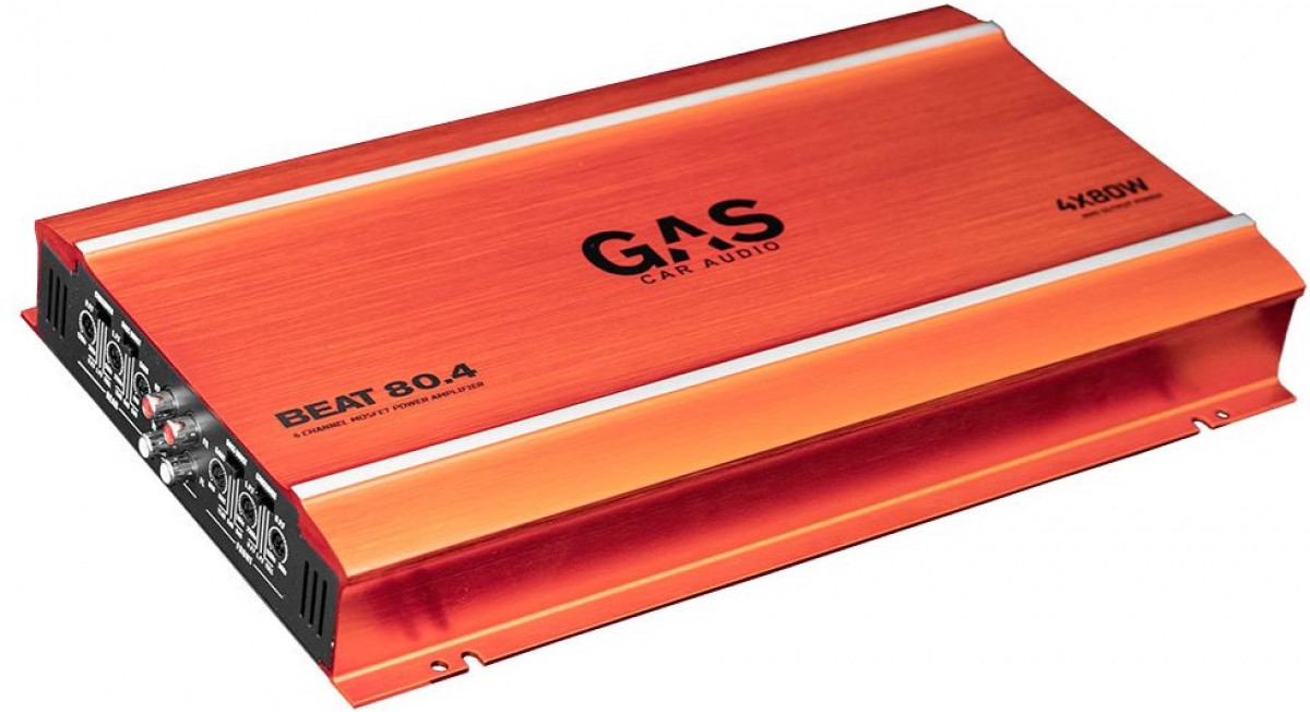 GAS Beat 80.4 on todella edullinen nelikanavainen pääte, jota voit käyttää esimerkiksi etu- ja takakaiuttimien ohjaamiseen tai vaihtoehtoisesti etu-/takakaiuttimien + subbarin käskyttämiseen.
