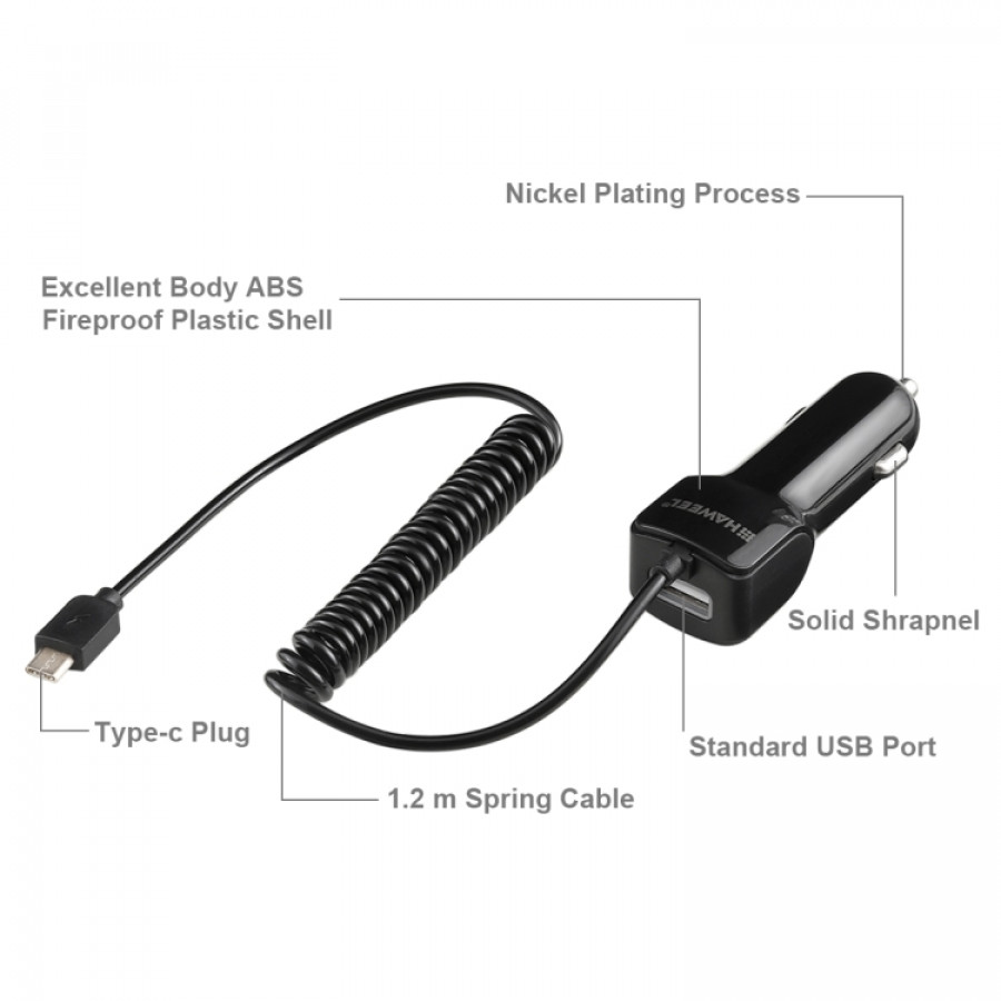 Haweel autolaturi 3.1A 5V USB-C / C-type + USB-A , 30cm-120cm haitarijohto