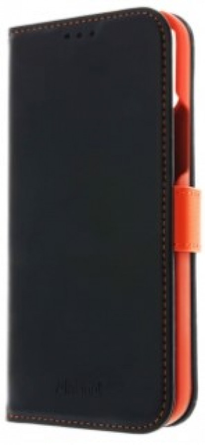 Insmat IPHONE 12 mini suojakotelo, aitoa nahkaa, musta/oranssi, RFID suoja