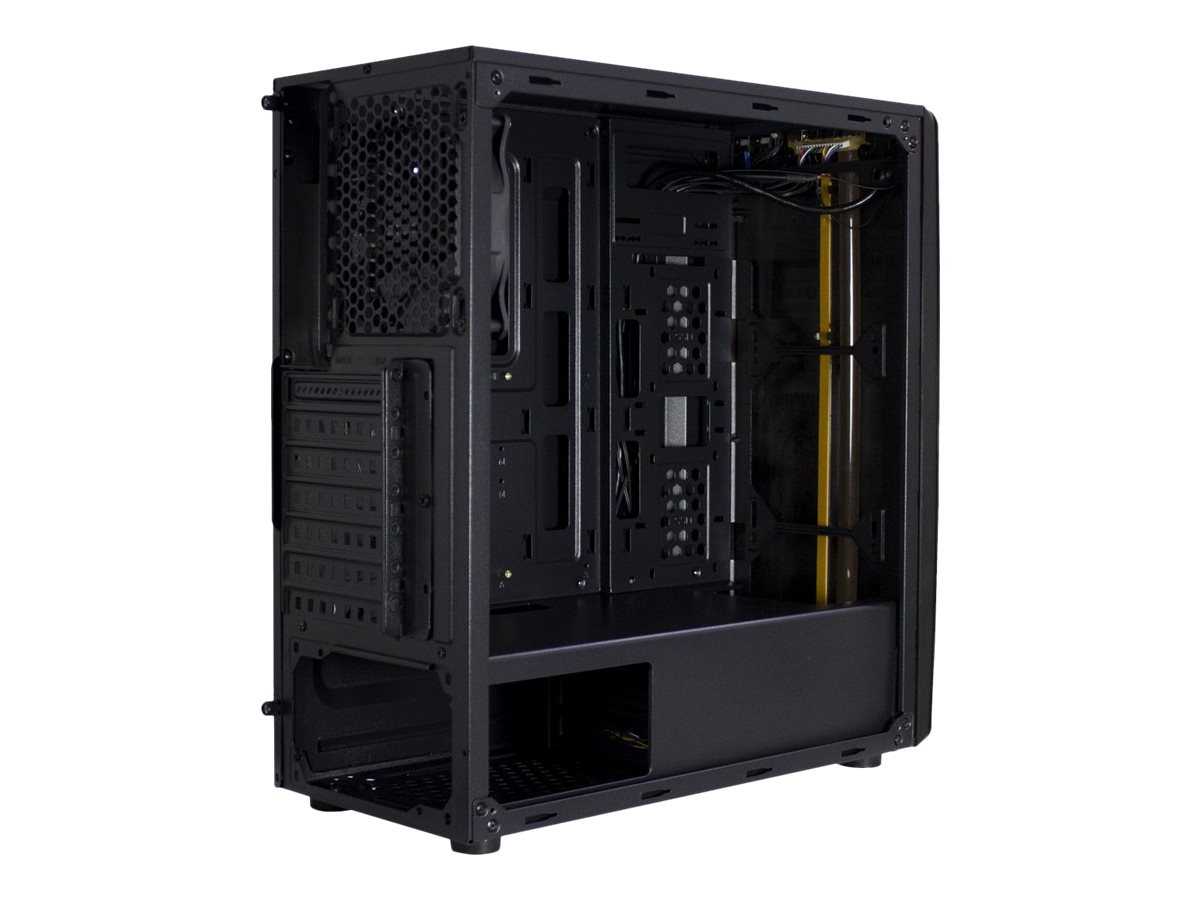 Jäähdytysjärjestelmä: Takana: 1 x 120 mm tuuletin sinisellä LEDillä | Edessä: 2 x 120 mm tuuletinpaikka