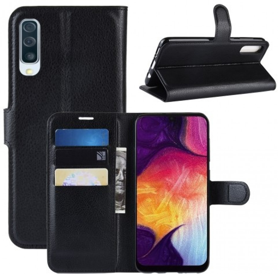 Samsung Galaxy A50 musta suojakotelo, Litchi