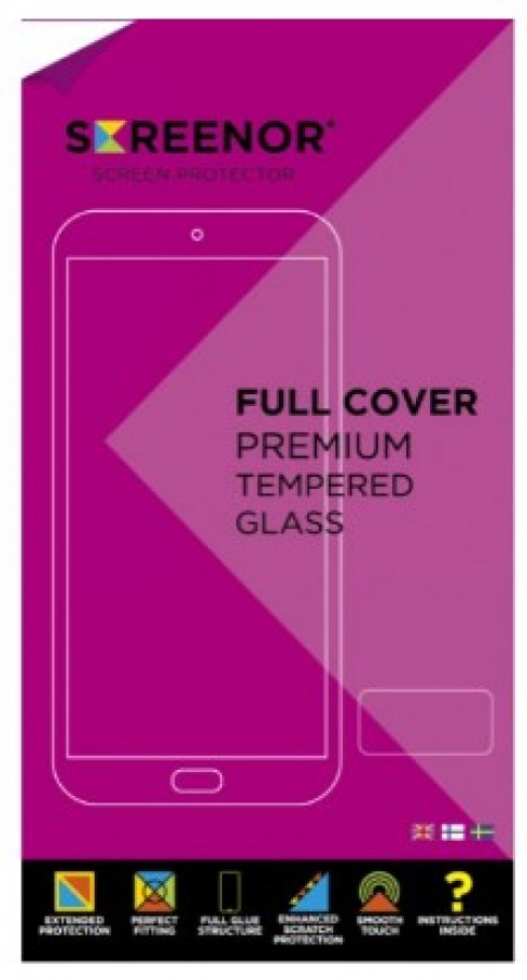 SCREENOR Full cover – näytönsuojalasi valmistetaan puhelimesta riippuen suorana tai kaarevana ja se ylettyy aina näytön reunasta reunaan. Tässä Full Cover -lasissa on musta reunus ja sen erikoisliimapinnan ansiosta se kiinnittyy puhelimen näyttöön koko pinta-alaltaan. Tämän ansiosta lasin kosketustuntuma on erinomainen. Paketissa on mukana kuvalliset asennusohjeet, puhdistusliinat, kohdistustarra ja asennuslasta