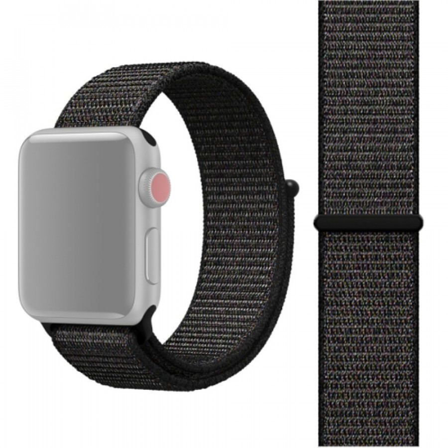 Apple Watch Series 7 45mm / 6 & SE & 5 & 4 44mm / 3 & 2 & 1 42mm, Magic Stick Sport Loop‑ranneke (musta)