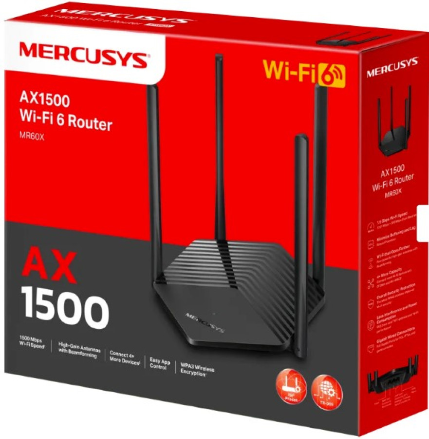 - Nopeudet jopa 1,5 Gbps – Optimaaliset Wi-Fi 6 -nopeudet, jotka ulottuvat jopa 1,5 Gbps (1201 Mbps 5 GHz taajuudella ja 300 Mbps 2,4 GHz taajuudella).