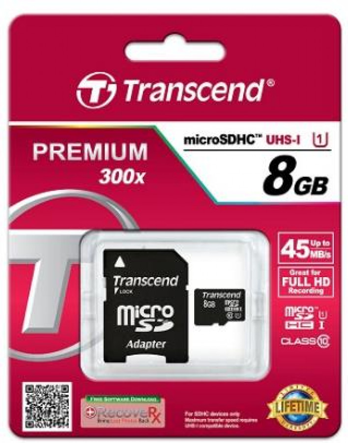 TRANSCEND MICROSDHC 8GB W/A 45M CL10 U1
