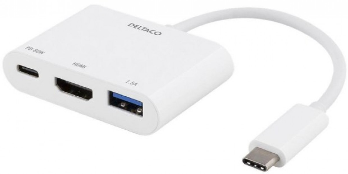 DELTACO USB-C-telakointiasema, HDMI/USB-A/USB-C, 60 W USB-C PD, valkoinen